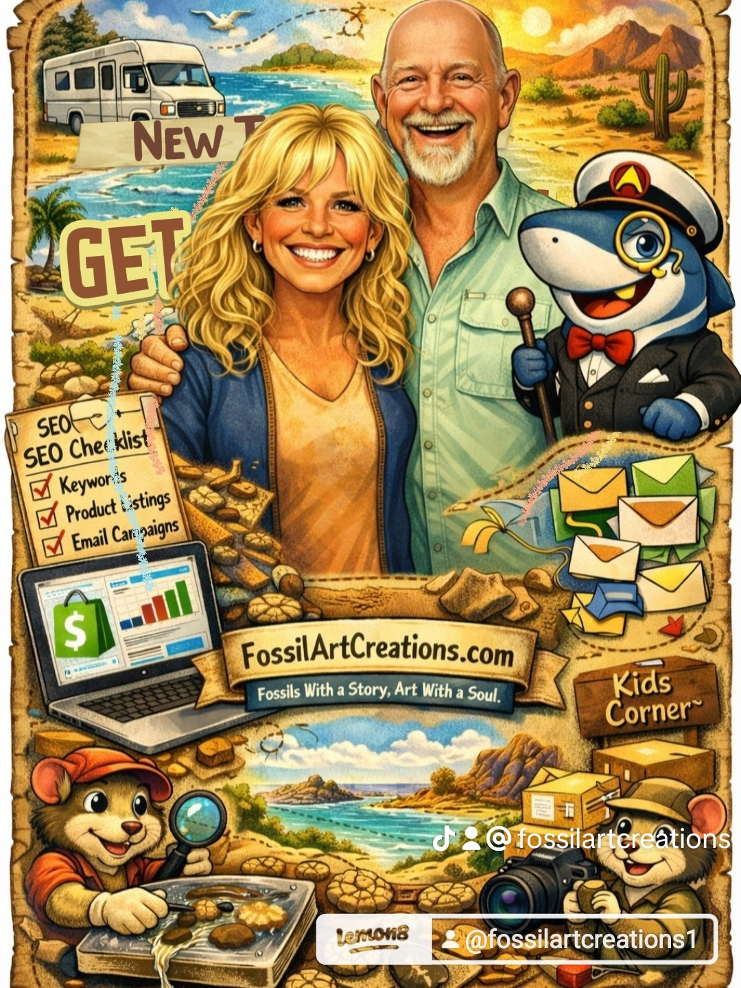 Fossil Art Creations was founded by Donna, an artist and lifelong beachcomber who turned her passion for fossil hunting into a way to share Earth’s history. What began as collecting shark teeth along the shore grew into creating elegant art and jewelry that preserve the stories of ancient oceans. Donna’s work bridges curiosity and connection, helping others hold a piece of prehistory while celebrating the beauty of the sea today.