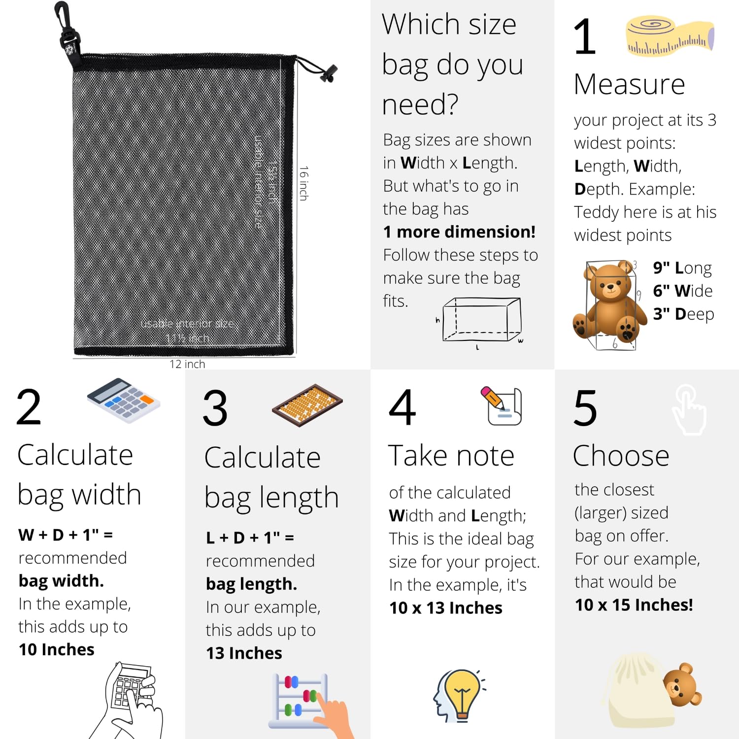 Mesh Find Bags with Clip — Set of 4 (6×8 in, Black)