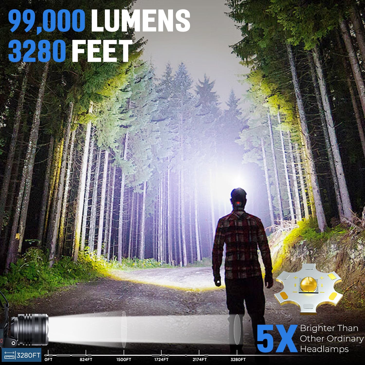 5 modes: High / Medium / Low / Strobe / SOS (+ red light function for night vision)